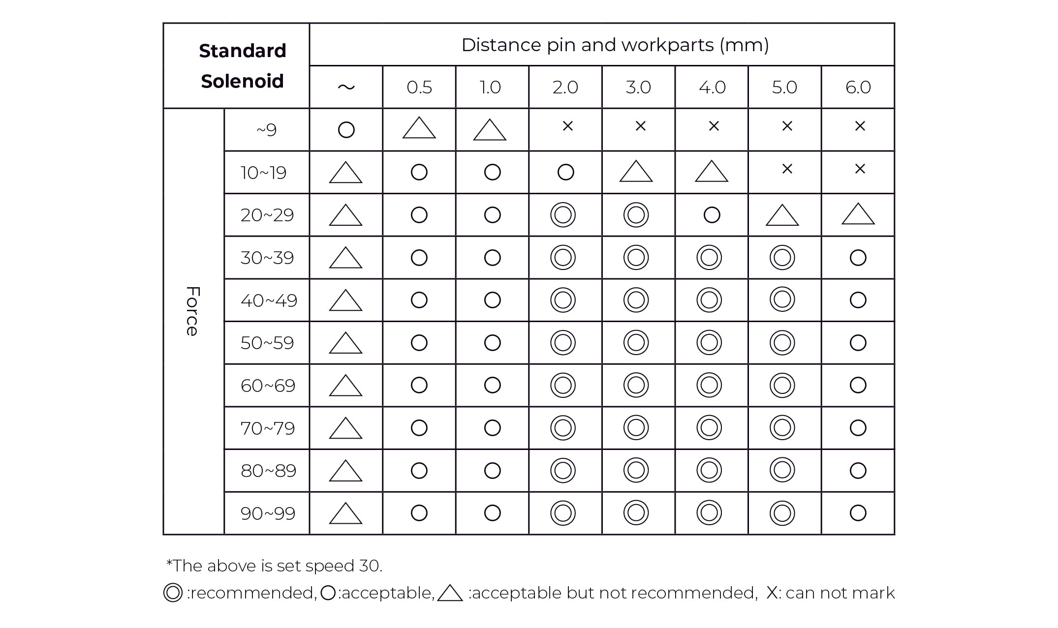 For most customer, marking everyday for 1-4 hours, typically 1-2 years of life. Normally the pin only needs a regrind to touch up the tip point.