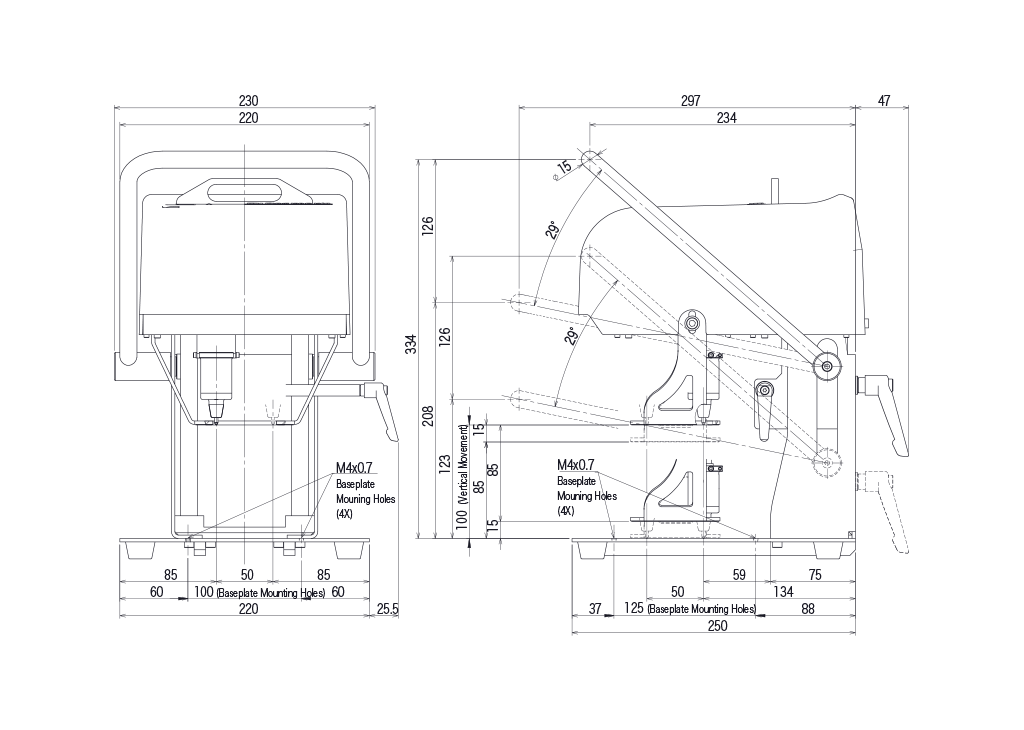 The height is adjustable up to 100mm with quick tightening levers to secure the unit at the right height.